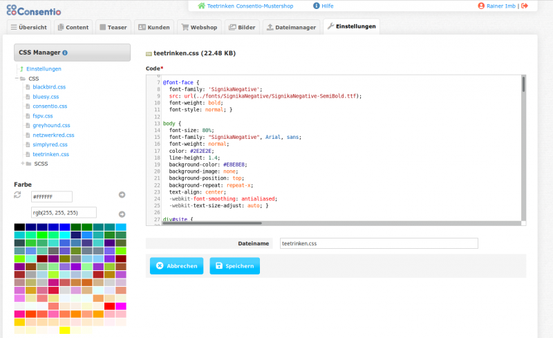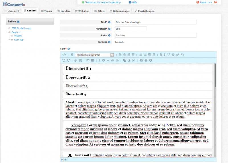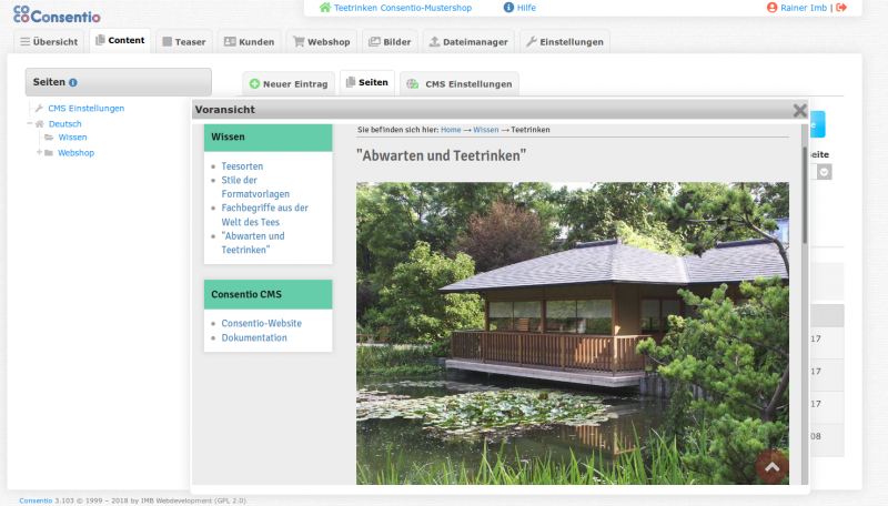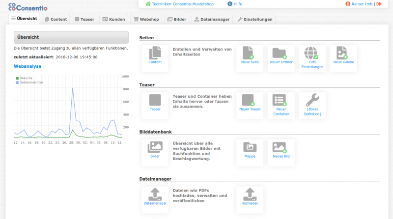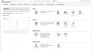Sie finden hier einige Screenshots des Consentio Content Managements. Sollten Sie Consentio genauer unter die Lupe nehmen wollen, richten wir Ihnen gerne unverbindlich und kostenlos einen Test-Account ein.
